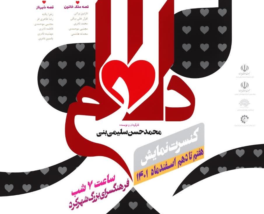 به گزارش روابط عمومي استانداري چهارمحال و بختياري، کنسرت‌نمايش "دل‌آرام" که عاشقانه‌اي تاريخي در شرح دلاوري‌هاي مردمان ايران‌زمين است و نقش مؤثر بانوان ايراني در حفاظت از شرف و استقلال کشور ايران را به نمايش مي‌گذارد از هفتم تا دهم اسفند از ساعت 7 شب در فرهنگسراي شهرکرد به روي صحنه مي رود.